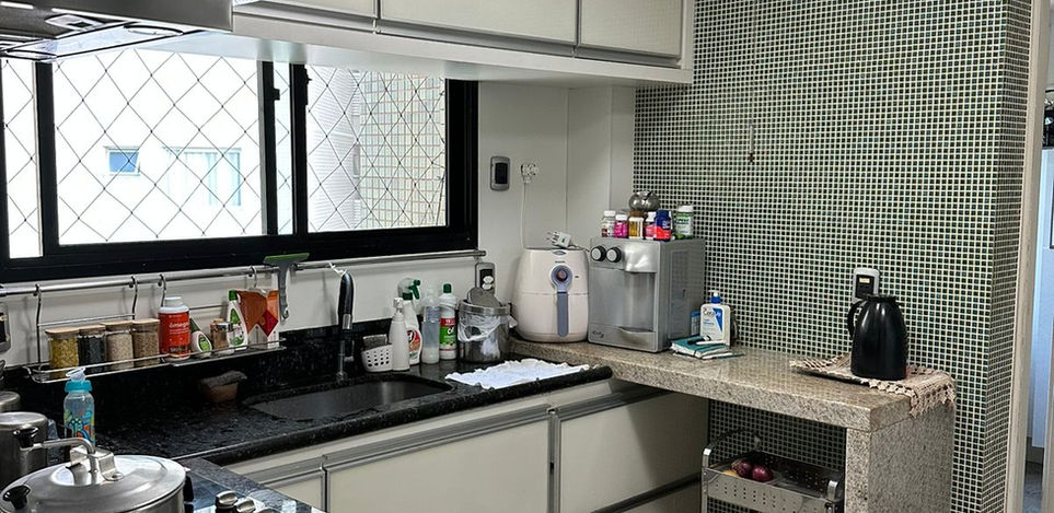 Aceita animais, Ar-condicionado, Varanda gourmet, Varanda, Varanda fechada com vidro, Vista para o mar, Sala grande, Lavabo, Escritório, Banheira, Armário embutido, Armário embutido no quarto, Armário na cozinha, Armário no banheiro, Área de serviço, Área de lazer, Conexão à internet, Piscina, Quadra poliesportiva, Brinquedoteca